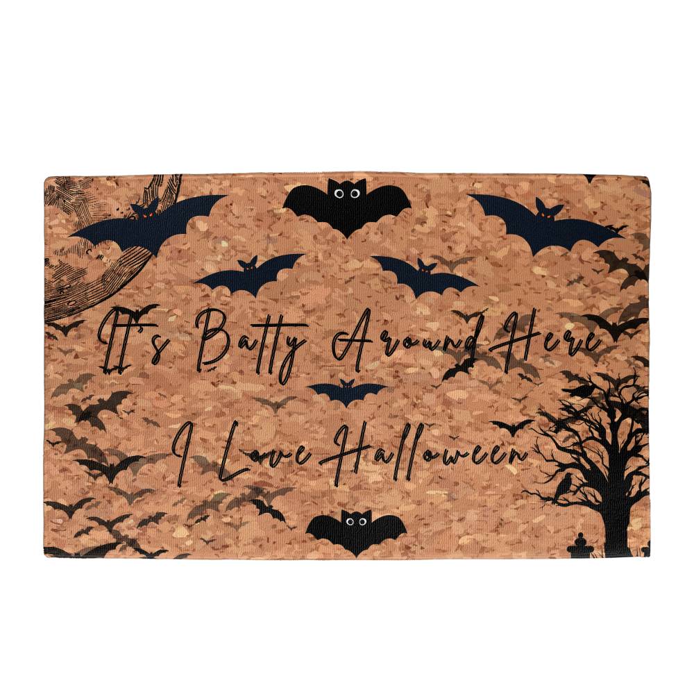 Adorn your walkway with our It's Batty Around Here / I love Halloween Welcome Mat. Perfect for indoor or outdoor use, our Halloween Decor design is bound to make a lasting impression! This would make an ideal gift for your beloved partner, family members, or dear friends on special occasions like birthdays, anniversaries, or for Halloween where you want to express your love and appreciation in an unforgettable way.