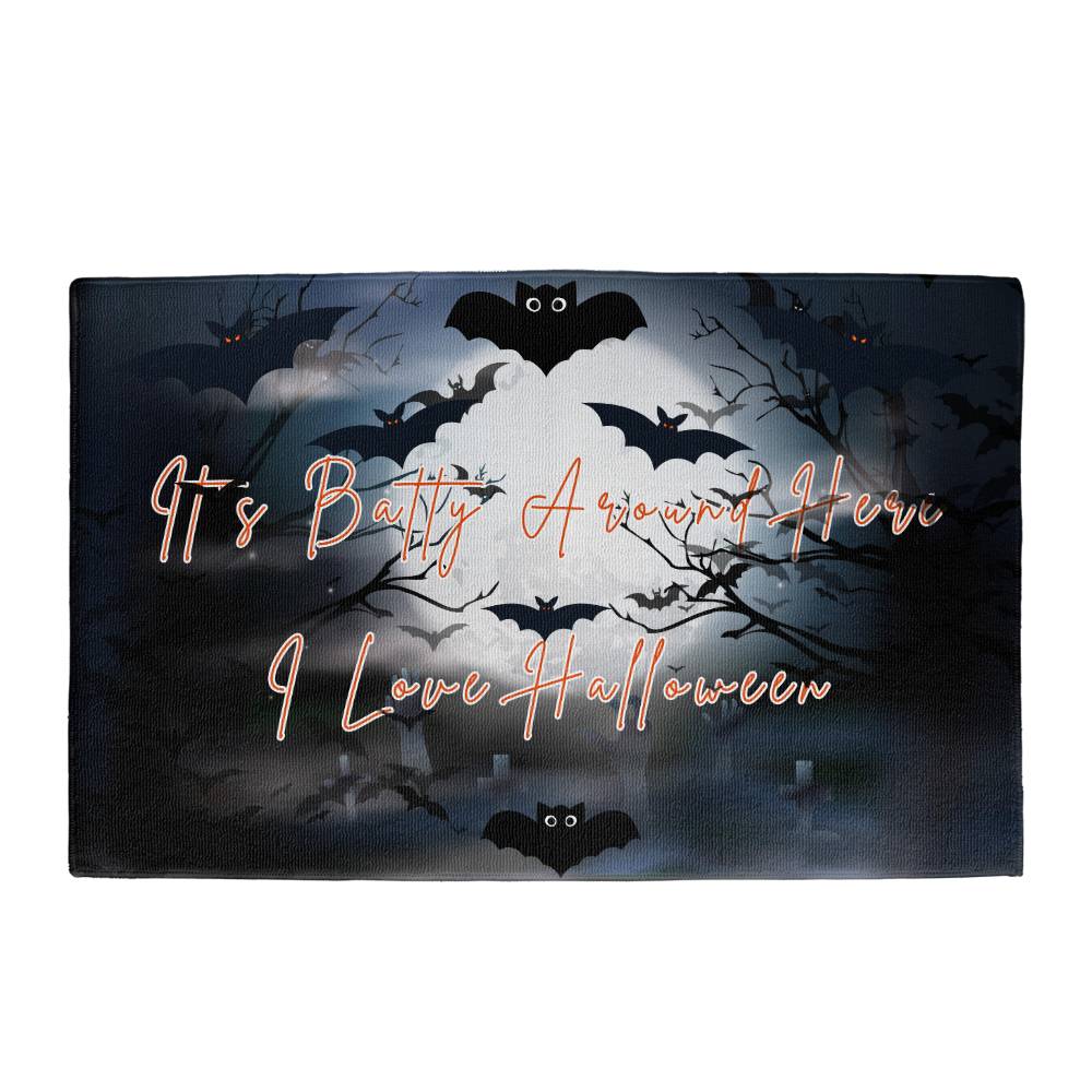 Adorn your walkway with our It's Batty Around Here / I Love Halloween Welcome Mat. Perfect for indoor or outdoor use, our Halloween Decor design is bound to make a lasting impression! This would make an ideal gift for your beloved partner, family members, or dear friends on special occasions like birthdays, anniversaries, or for Halloween where you want to express your love and appreciation in an unforgettable way.