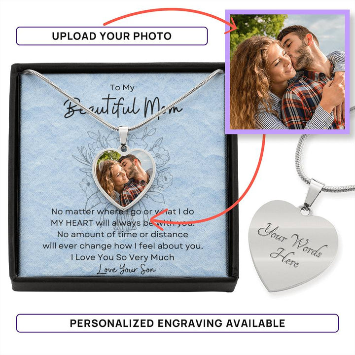 ➜ If you’re not 100% satisfied with your purchase for any reason, please contact us and we will make it right. Your satisfaction is our ultimate goal.Message Reads: No matter where I go or what I do MY HEART will always be with you.